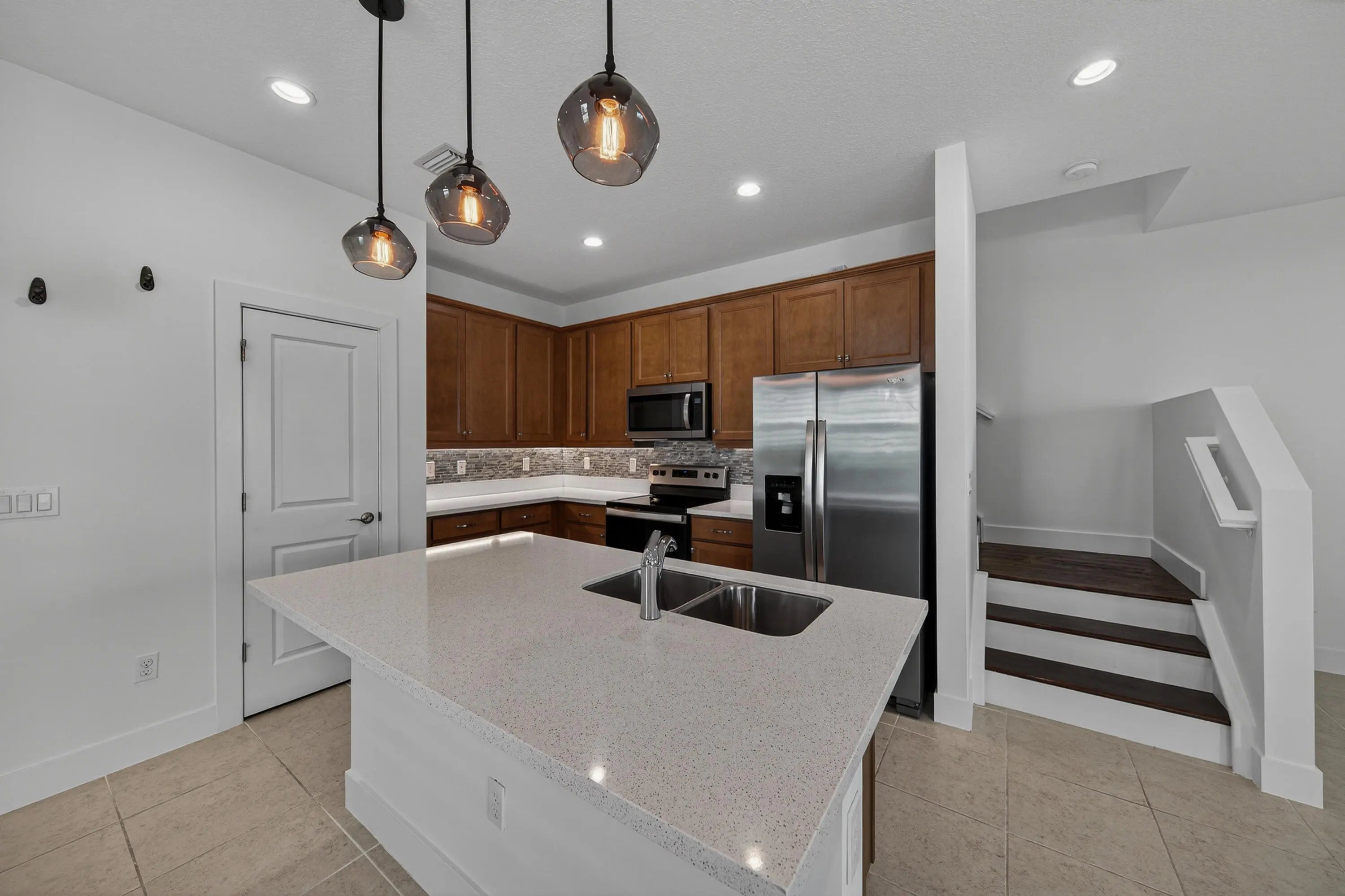 Located in the gated community of Sandpiper Pointe, this 2-story luxury townhome built in 2023 offers 3 bedrooms plus a spacious loft, 2.5 bathrooms, and a 2-car garage with an EV hook-up. Tile flooring extends throughout the entire home, creating a sleek, modern feel. The gourmet kitchen flows seamlessly into the spacious living area, perfect for everyday living and entertaining. The primary suite features a custom built-in walk-in closet, while impact windows throughout the home provide added peace of mind.