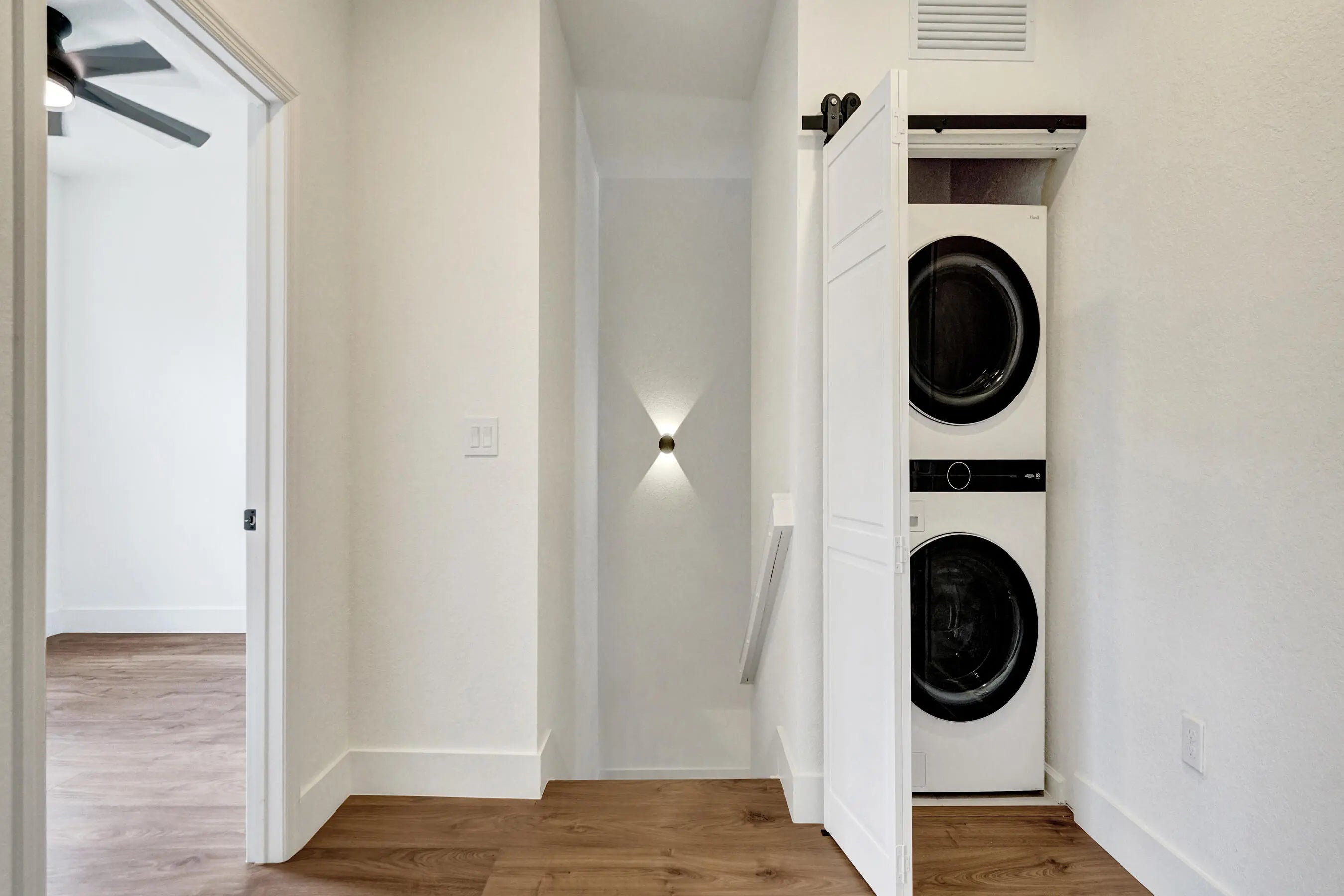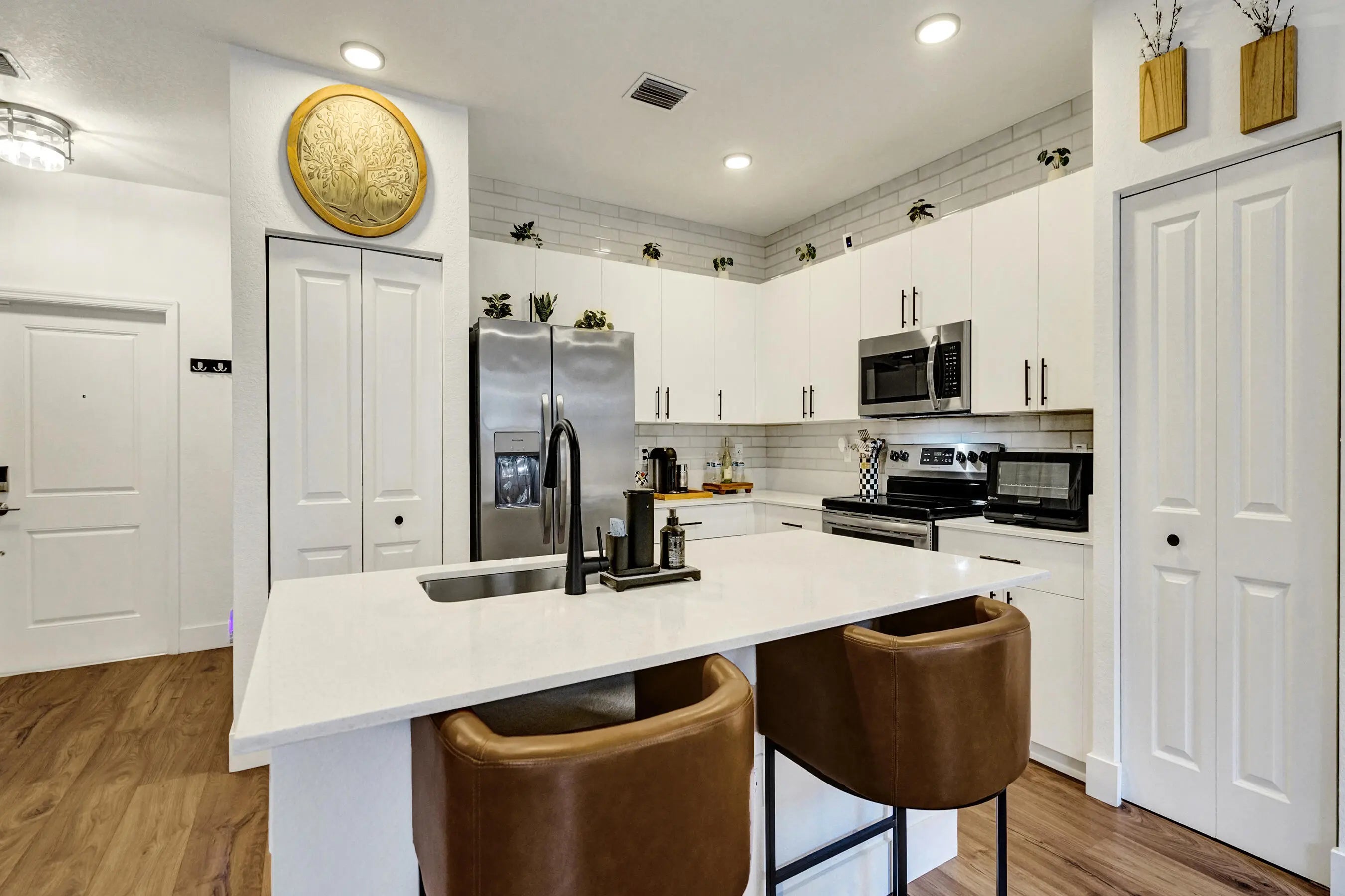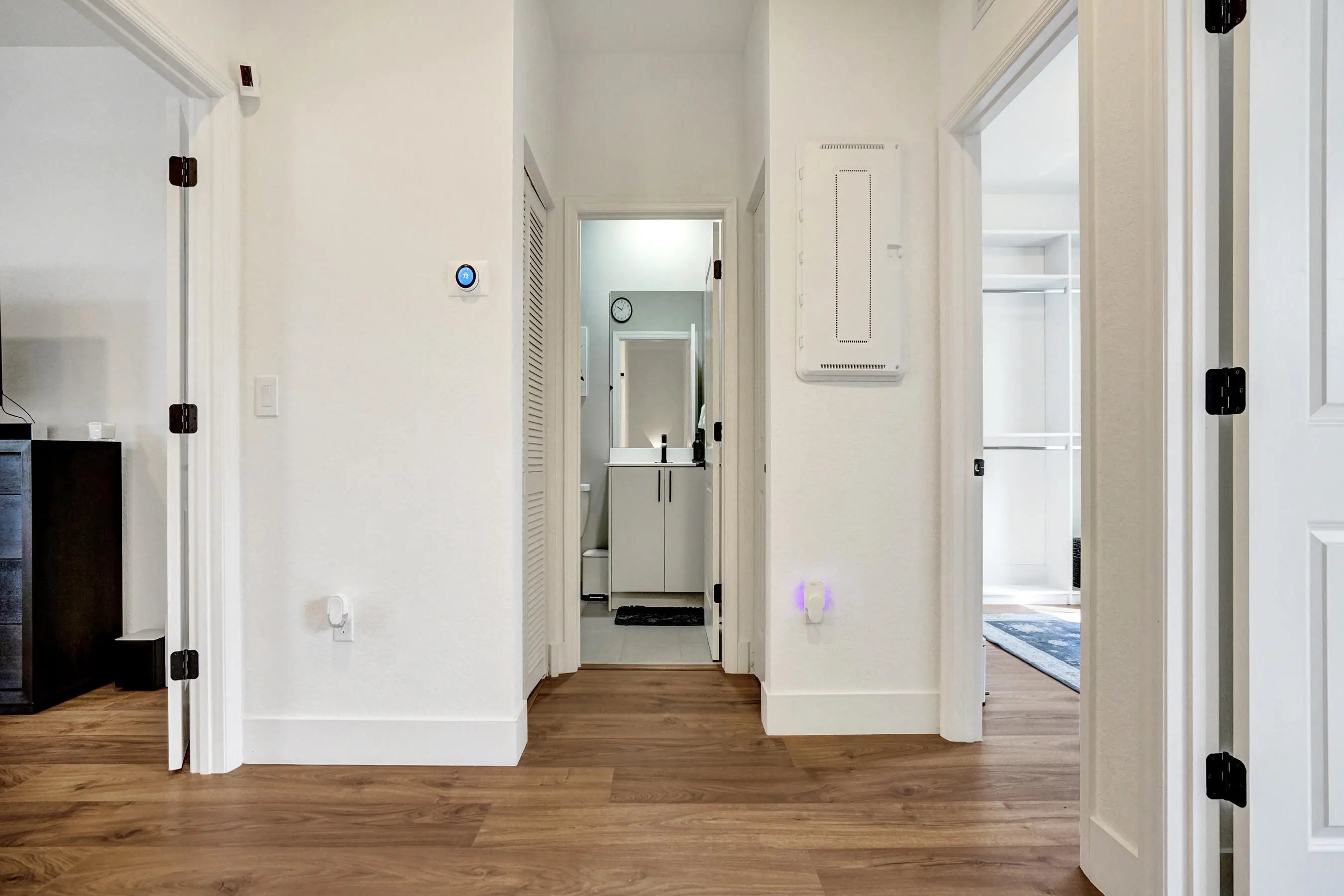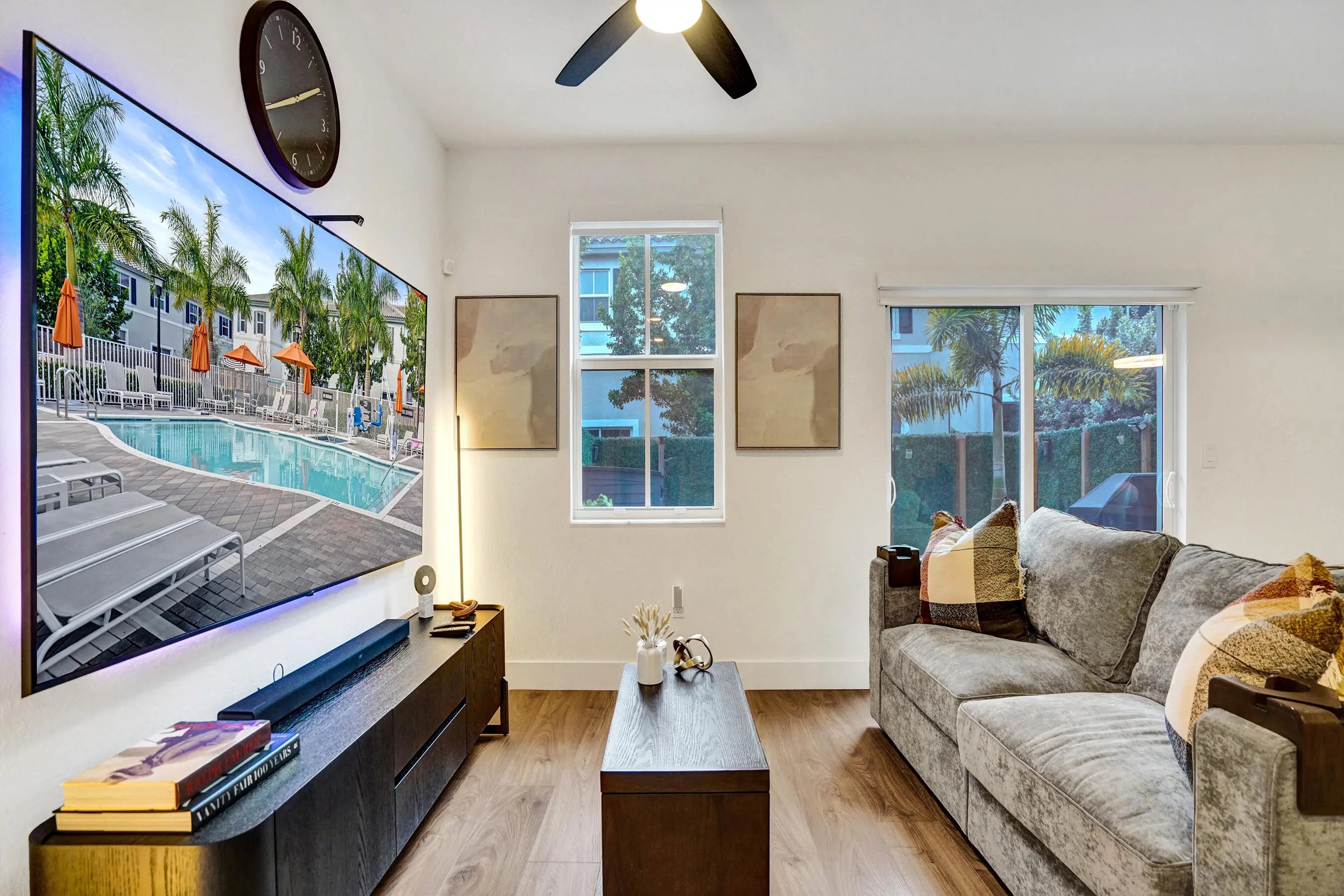 Welcome to Sunset Trails, a gated neighborhood offering full amenities and community events with low HOA fees and all A-rated schools! This newer construction townhome truly stands out with upgrades and improvements that go well beyond the builder's original finishes. Featuring full impact windows and doors for added peace of mind, the home is enhanced with luxury laminate wood flooring throughout, creating a seamless and modern feel. Natural light pours into the open living spaces, complemented by zebra automatic shades with remote controls for effortless style and convenience. The spacious bedrooms provide comfort and flexibility, with one room that has been thoughtfully redesigned into an unbelievable custom closet that any buyer will LOVE! The primary suite serves as a private retreat