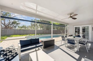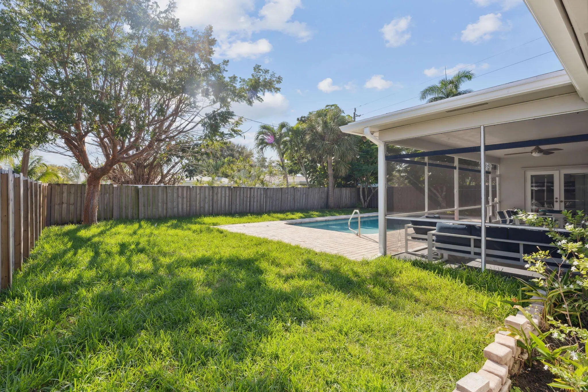 Welcome to this charming single-family home in the heart of Deerfield. This property has 3 bds, 2 bas, and a spacious living area of 1,387+ sq. ft. The interior features an open floor plan with porcelain wood plank tile floors and a modern kitchen that seamlessly merges with the dining and living areas. The main suite stuns with a roomy layout, walk-in closet, and a chic bathroom boasting a tub and spacious shower. The updated cabana bath is perfect for guests. Outside, you'll find a covered patio that overlooks the inground pool & custom lighting. The property sits on a oversized fenced in lot and has a 1-car garage with a wraparound driveway suited for at least 3 cars. This home is within walking distance of the beach, bars, restaurants and conveniently located near Publix & Sprouts.