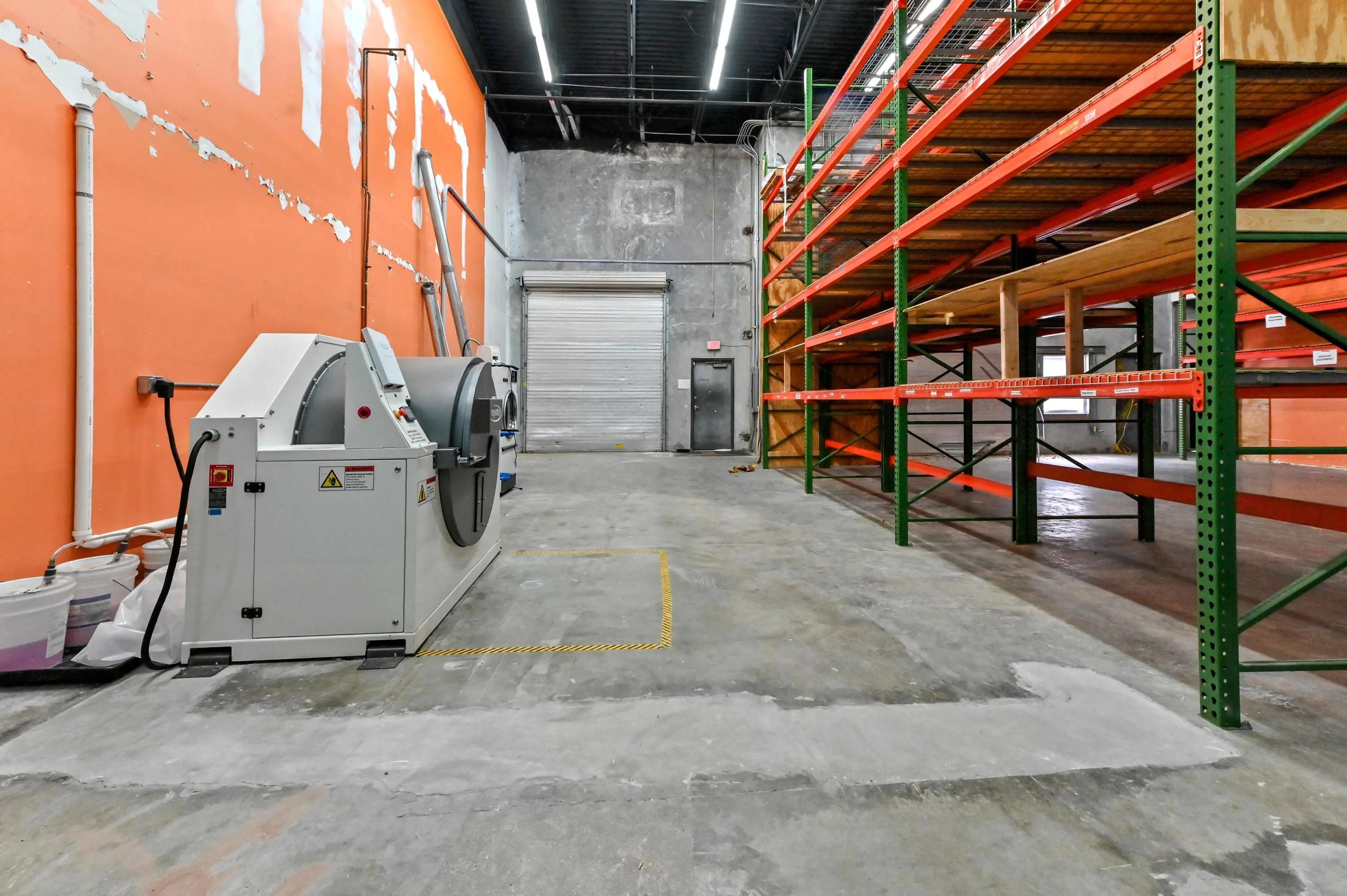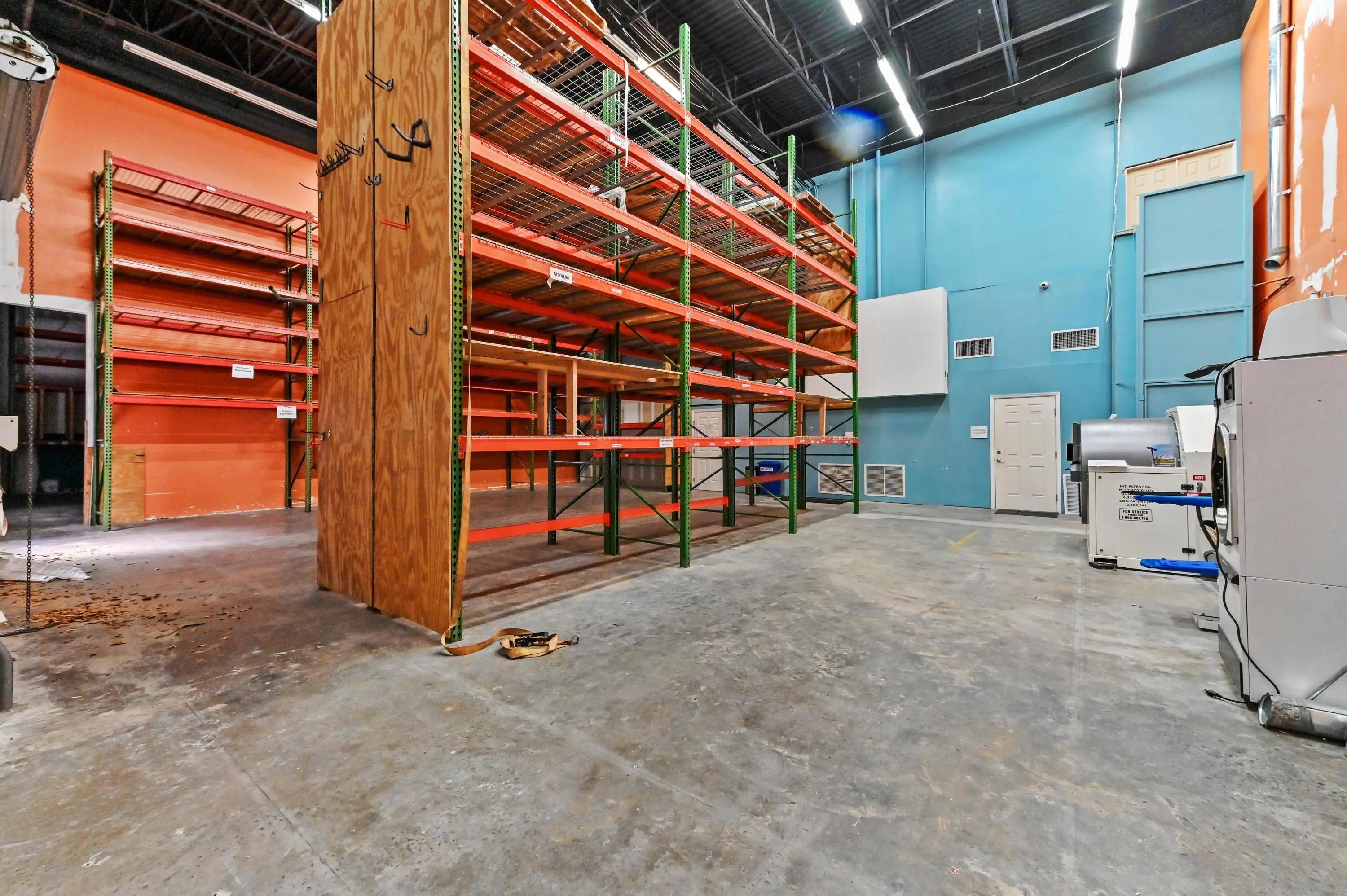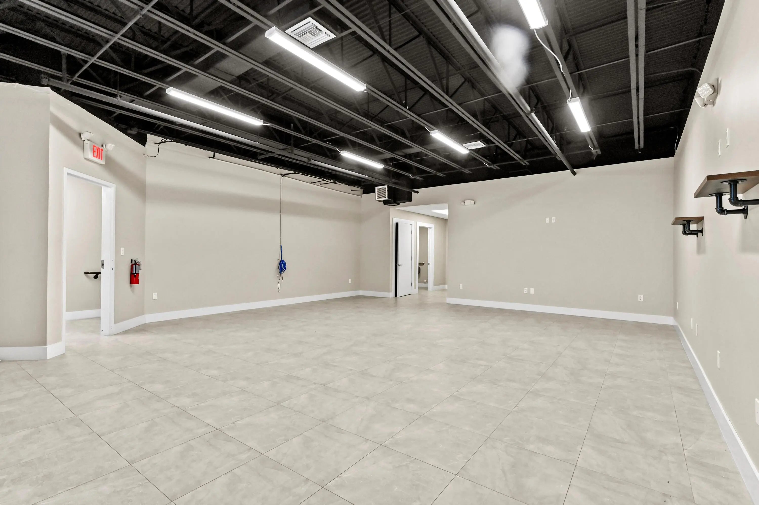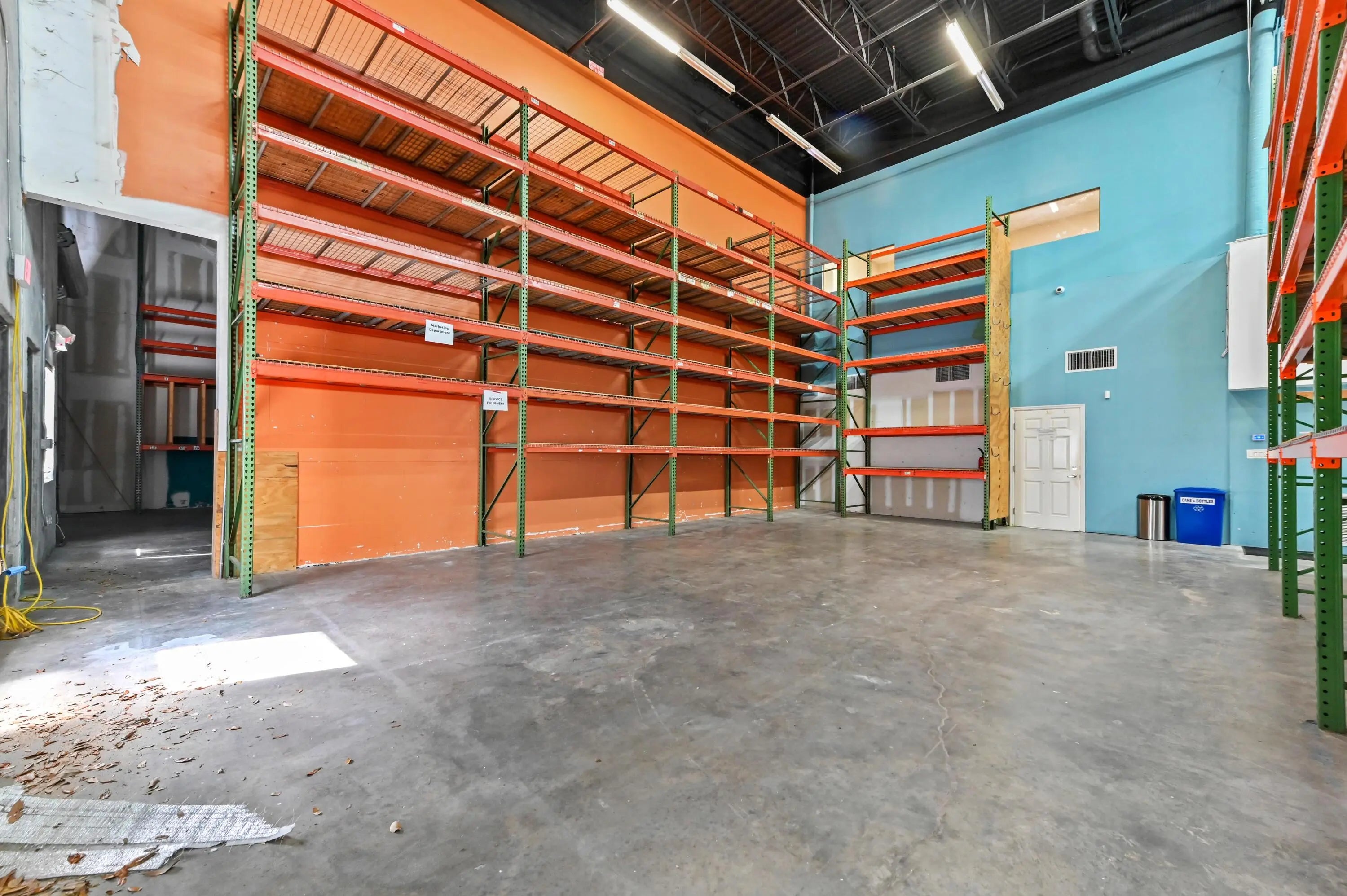 Discover the ultimate flexible headquarters at 4050 Westgate Ave, Units 106-108, a premier commercial destination in West Palm Beach. This expansive multi-unit suite commands attention with a prominent monument sign and a modern facade that opens into a sophisticated, dual-entry professional environment. The ground floor is a masterclass in versatile design, featuring a vast, open-concept showroom or collaborative ''bullpen'' anchored by polished tile flooring and industrial-chic exposed black ceilings. This level integrates a series of private, sunlit offices and a dedicated warehouse component, complete with massive soaring ceilings, heavy-duty industrial racking, and a large roll-up bay door for seamless logistics and inventory management.
