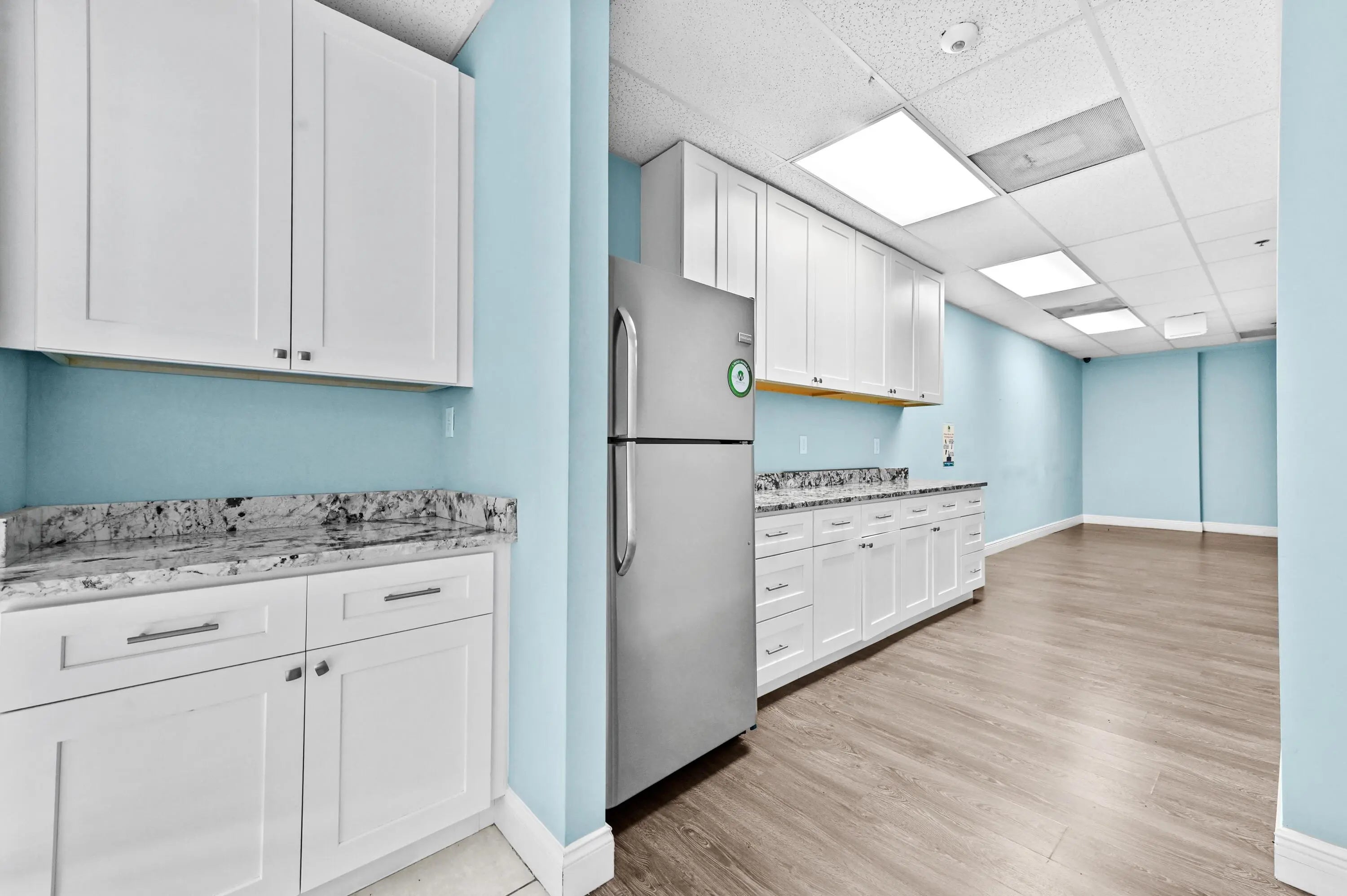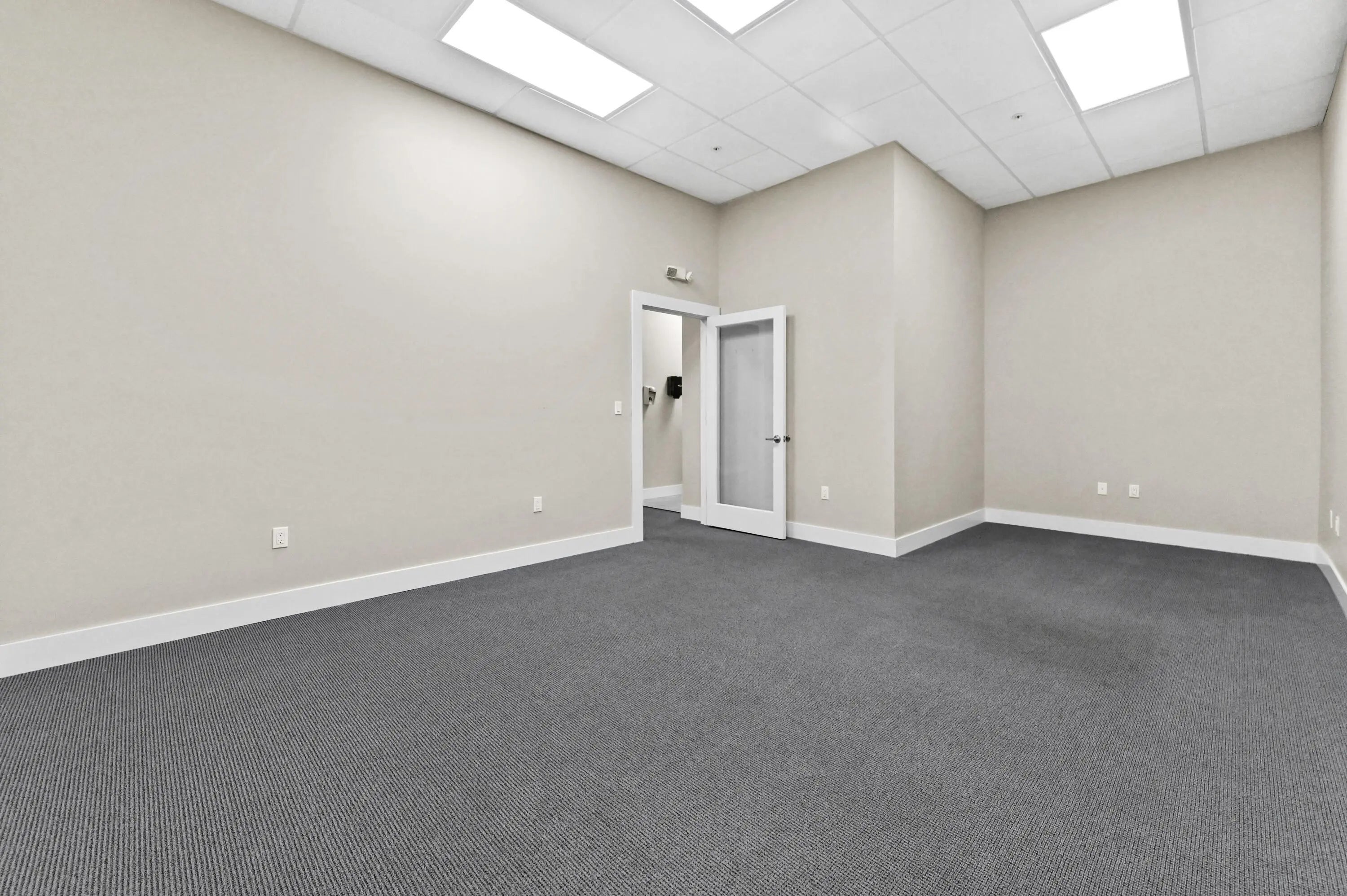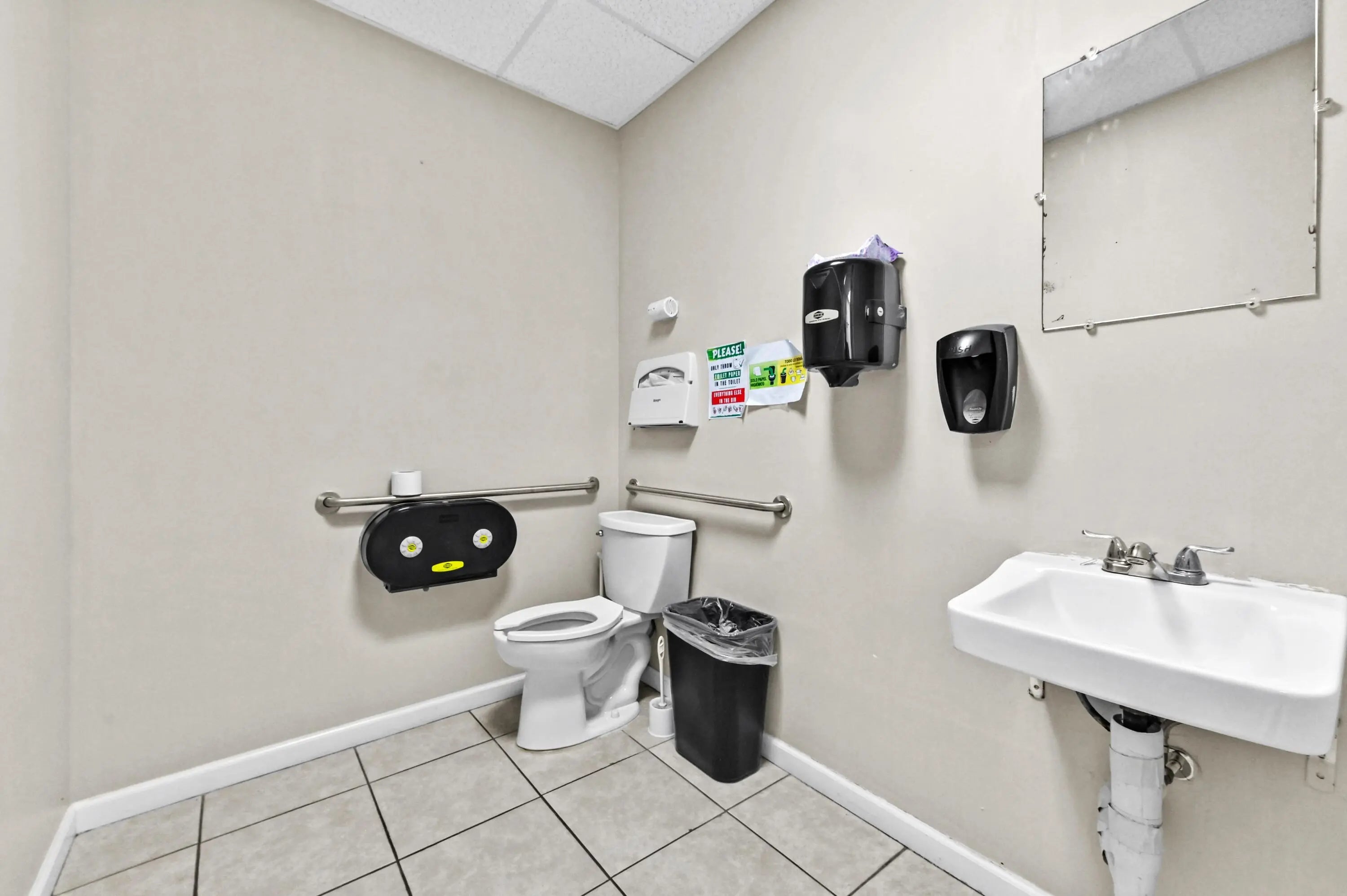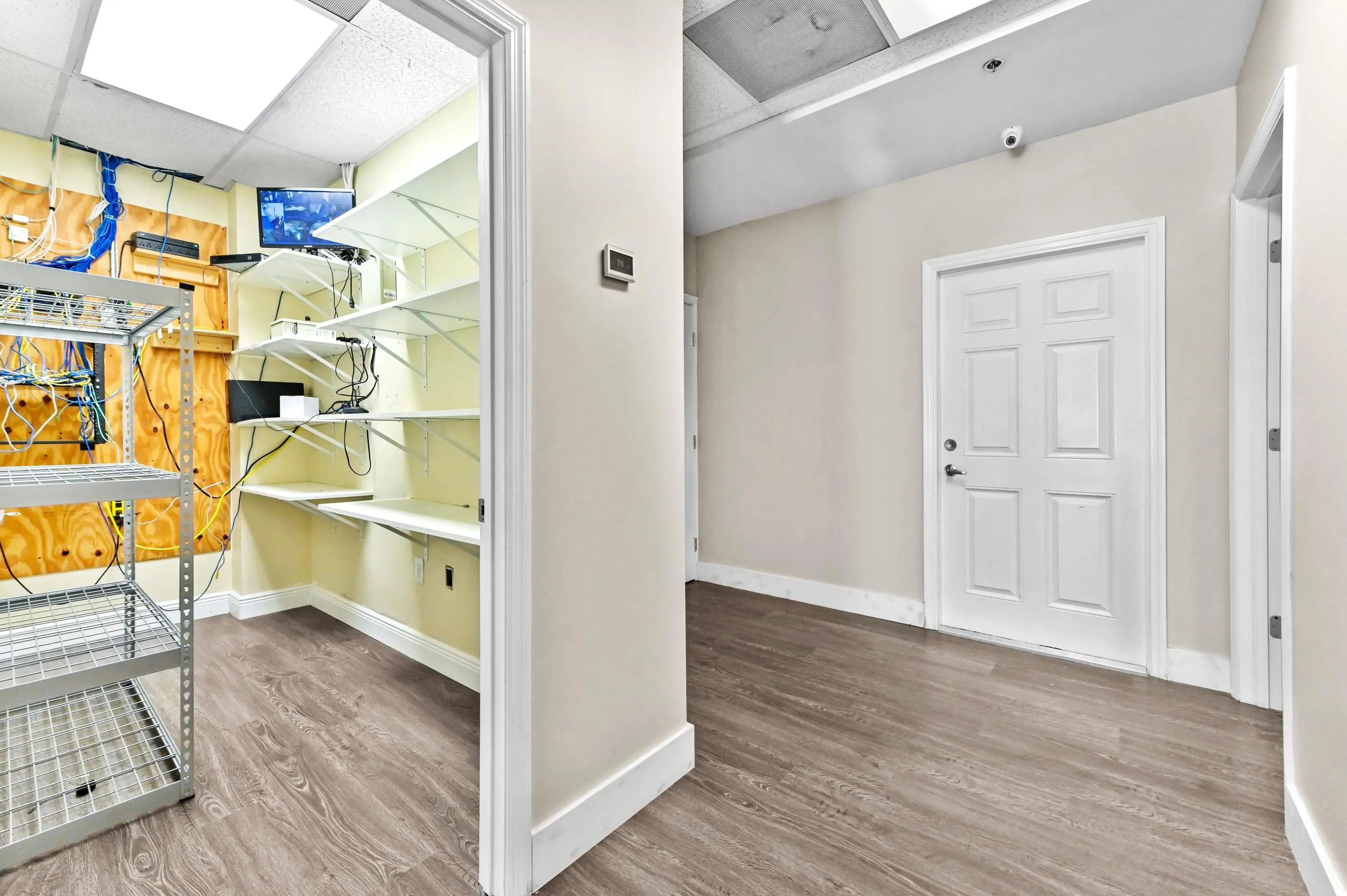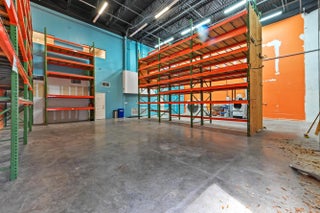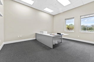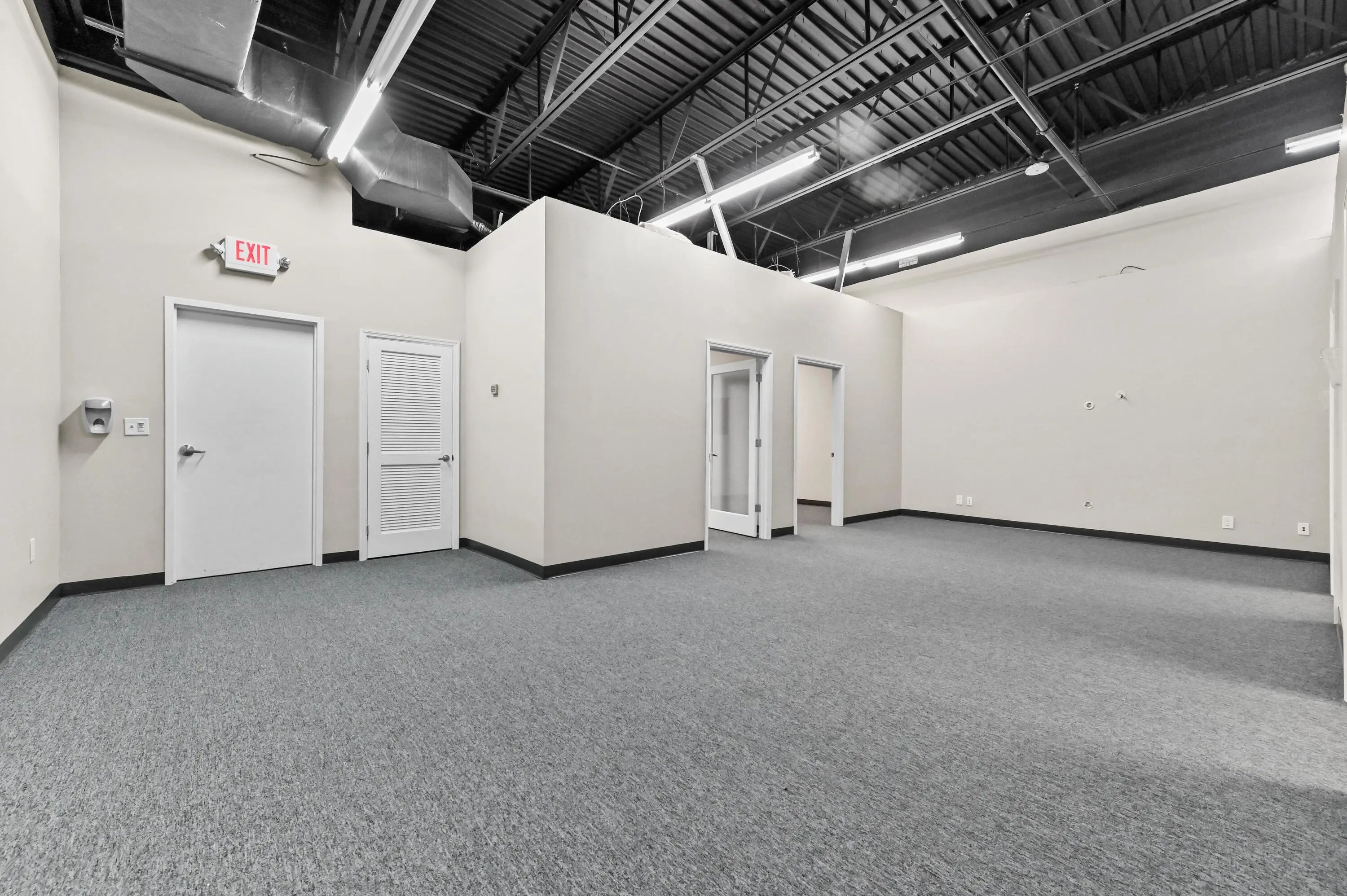 Discover the ultimate flexible headquarters at 4050 Westgate Ave, Units 106-108, a premier commercial destination in West Palm Beach. This expansive multi-unit suite commands attention with a prominent monument sign and a modern facade that opens into a sophisticated, dual-entry professional environment. The ground floor is a masterclass in versatile design, featuring a vast, open-concept showroom or collaborative ''bullpen'' anchored by polished tile flooring and industrial-chic exposed black ceilings. This level integrates a series of private, sunlit offices and a dedicated warehouse component, complete with massive soaring ceilings, heavy-duty industrial racking, and a large roll-up bay door for seamless logistics and inventory management.