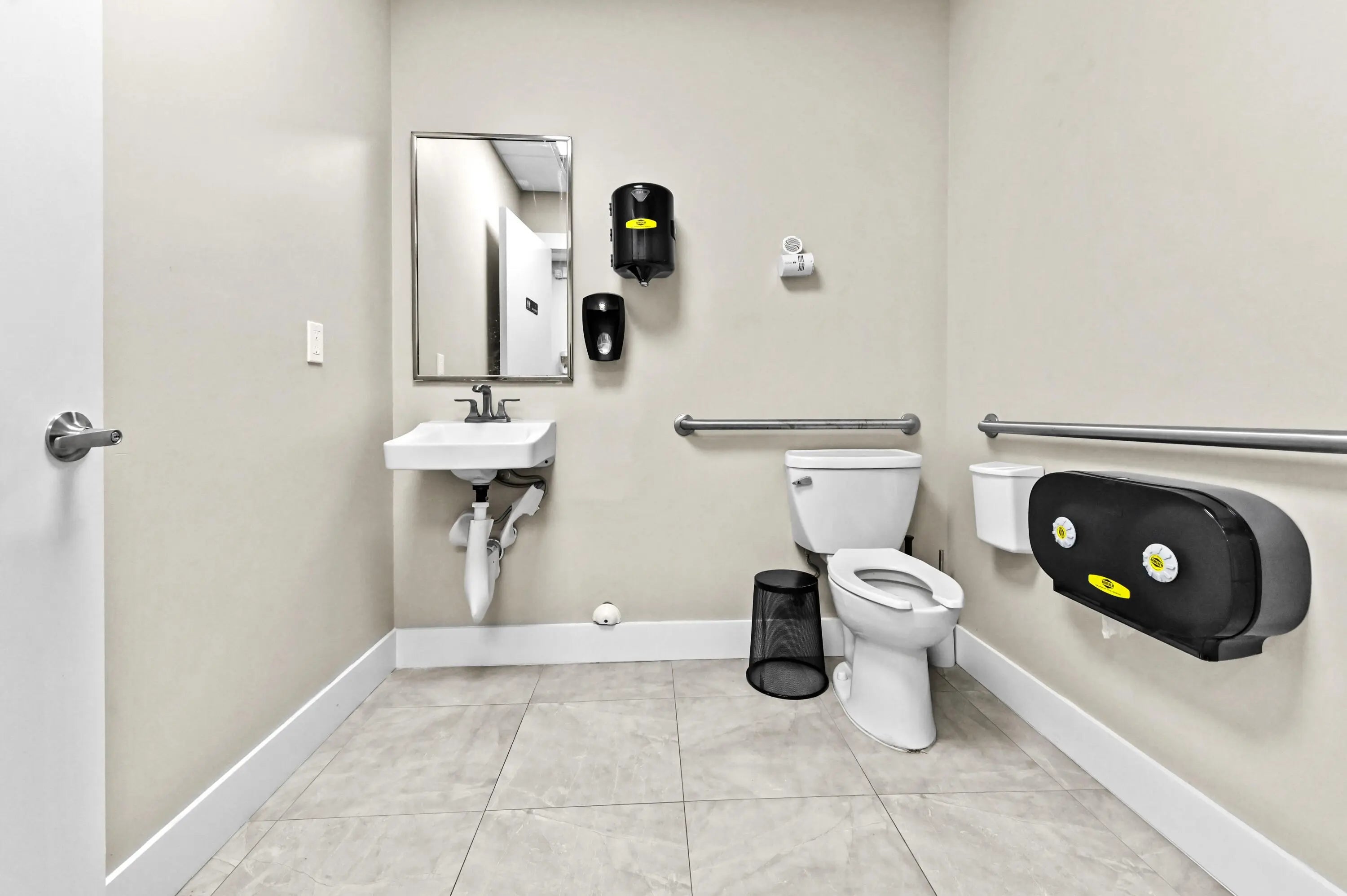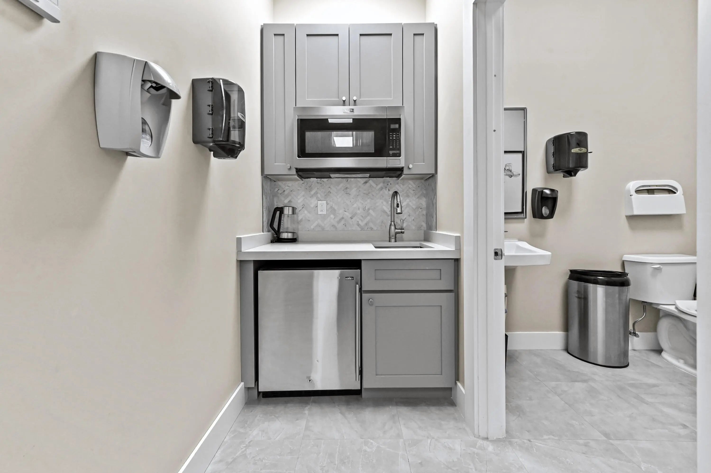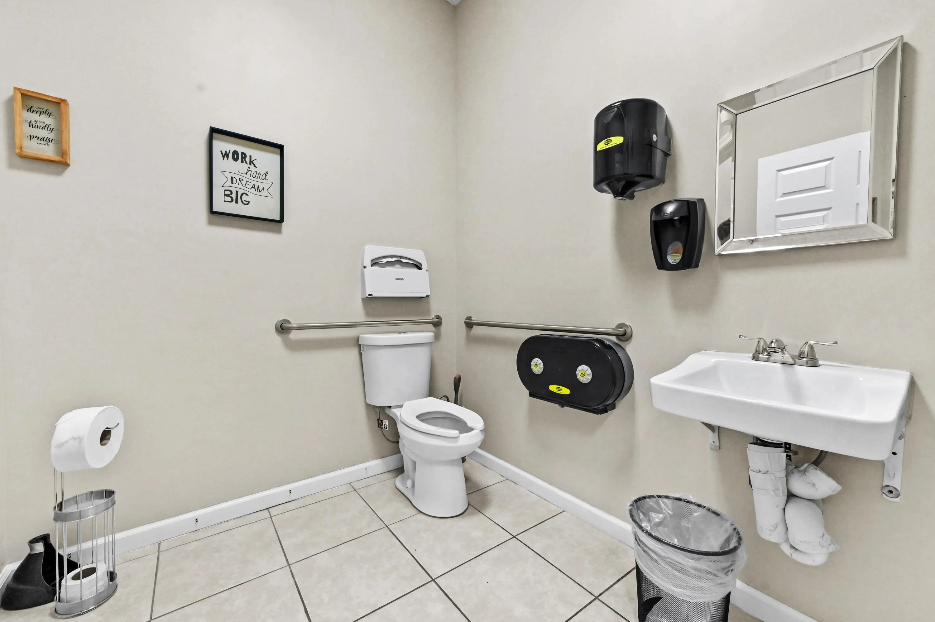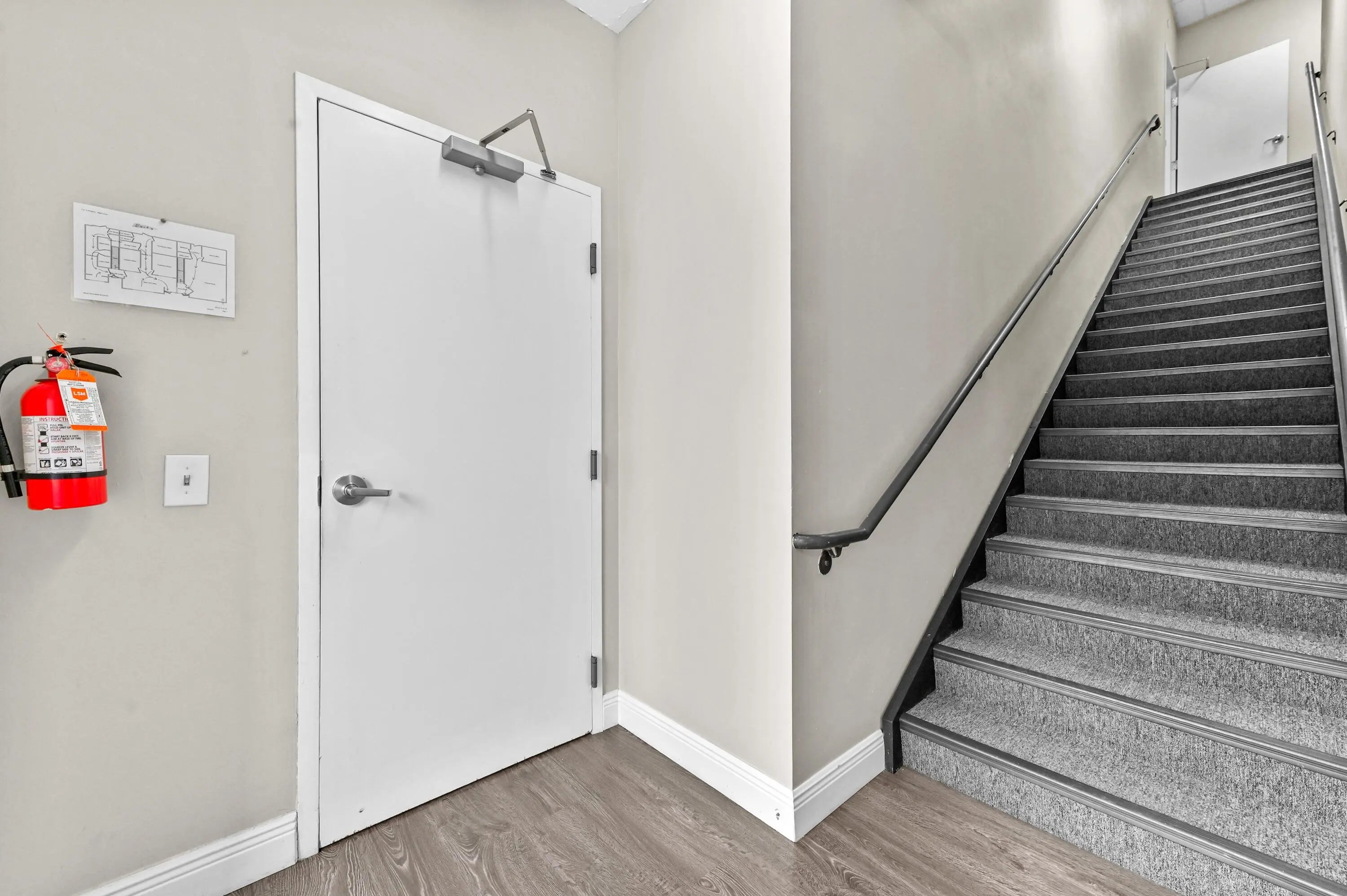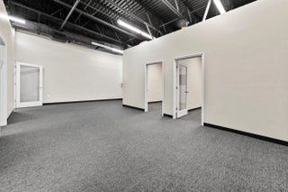 Discover the ultimate flexible headquarters at 4050 Westgate Ave, Units 106-108, a premier commercial destination in West Palm Beach. This expansive multi-unit suite commands attention with a prominent monument sign and a modern facade that opens into a sophisticated, dual-entry professional environment. The ground floor is a masterclass in versatile design, featuring a vast, open-concept showroom or collaborative ''bullpen'' anchored by polished tile flooring and industrial-chic exposed black ceilings. This level integrates a series of private, sunlit offices and a dedicated warehouse component, complete with massive soaring ceilings, heavy-duty industrial racking, and a large roll-up bay door for seamless logistics and inventory management.