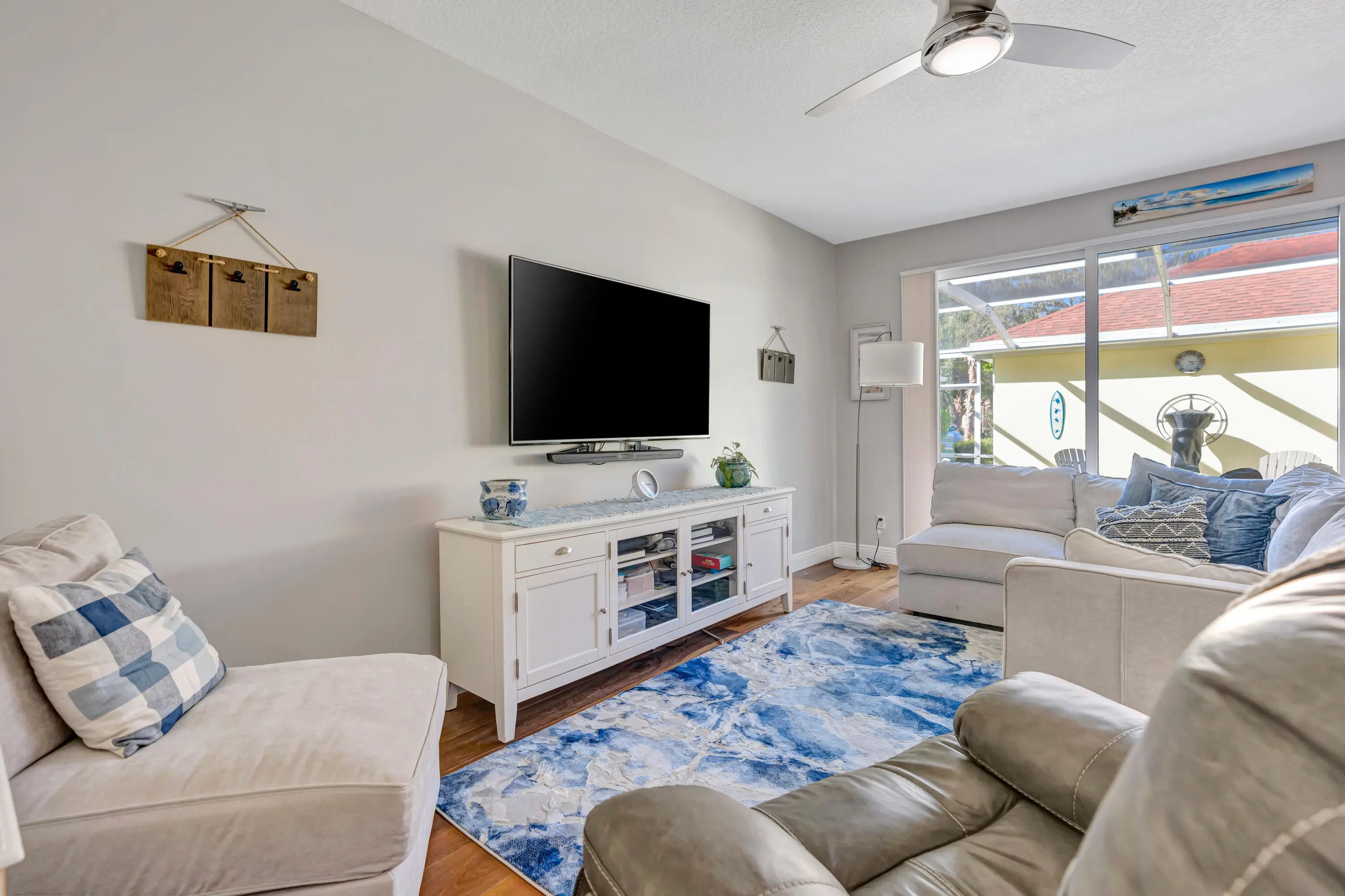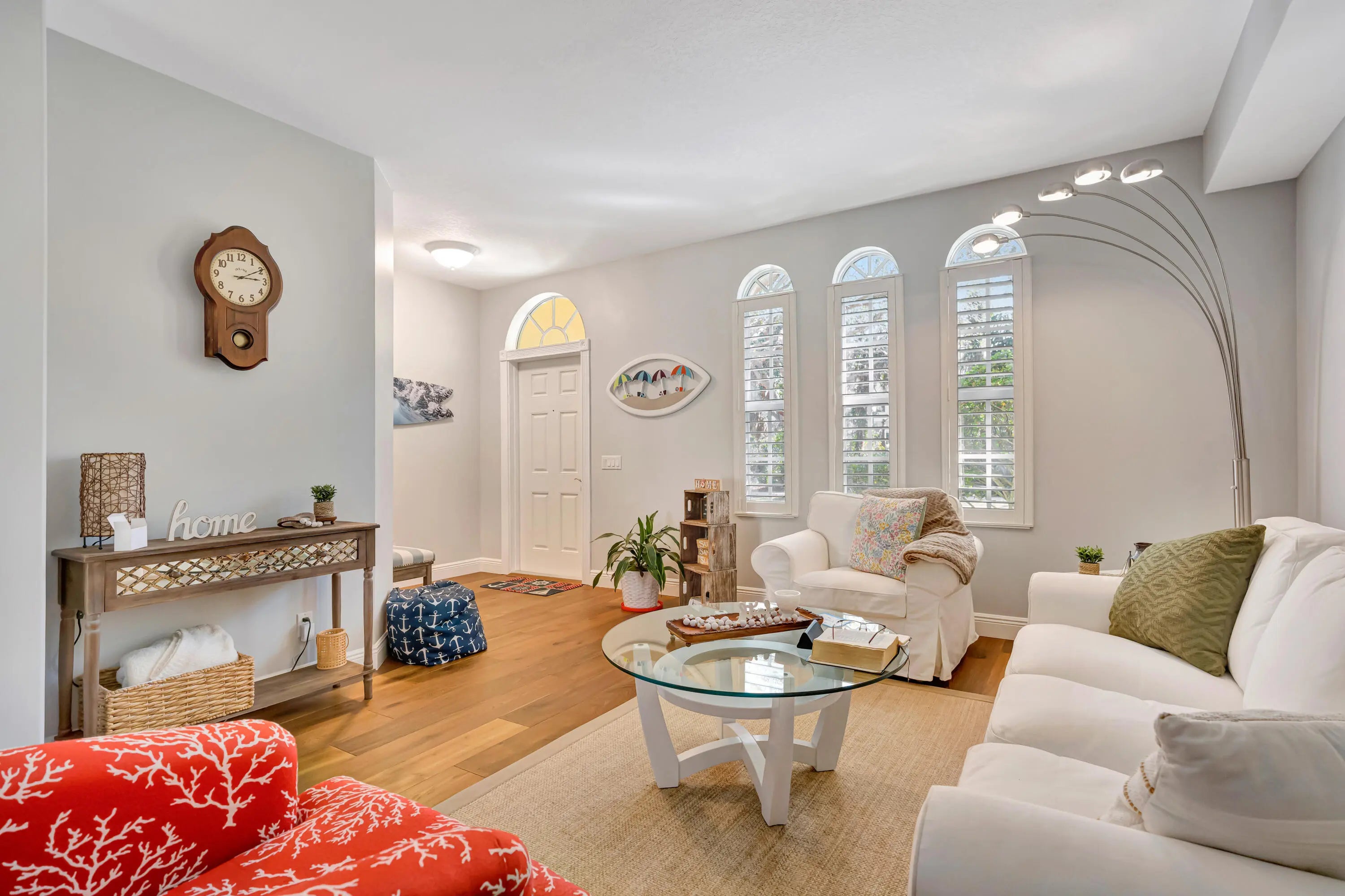 Exquisite 3BR/2.5BA DiVosta-built townhome located in the highly sought-after Cambridge community at Abacoa. This beautifully maintained residence features stunning European Oak floors, fumed & oiled giving an immediate lasting impression upon entering. The upgraded kitchen offers quartz countertops, stainless steel appliances, and abundant cabinetry, perfect for everyday living and entertaining. All impact glass provides peace of mind, complemented by elegant plantation shutters throughout. Spacious outdoor patio area with an expanding awning for hosting. The completely remodeled primary bath showcases modern finishes and thoughtful design. Newer roofs (2022) add additional value and security. Move-in ready and ideally located near Abacoa's shops, dining, parks, and top-rated schools.