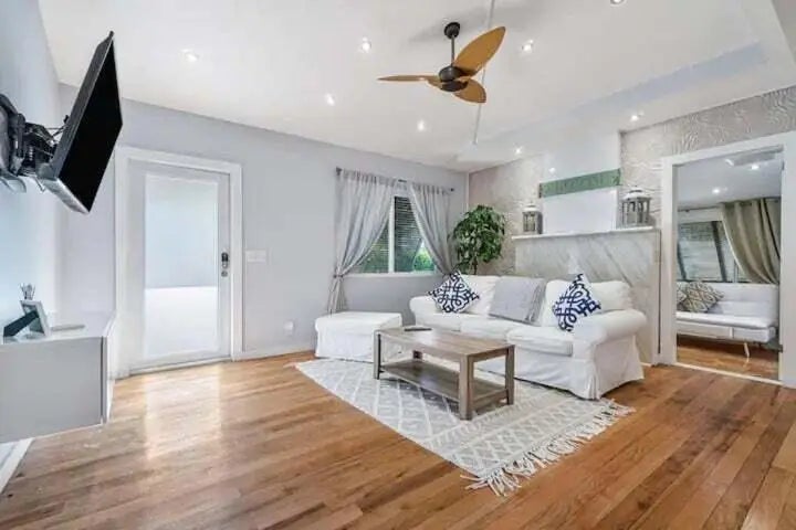 Beautiful beach bungalow in the center of Delray Beach for seasonal rental. 2 bed with additional futon bed in den for additional sleeping 2 bath home is ready for your winter getaway. Home comes fully stocked with all you will need for a home feel stay. Surrounded by beautiful banyan trees, outdoor seating and hammocks you will really feel all paradise has to offer. 1 mile to the beach. 4 blocks to all the best places Delray's famous ''The Ave''.