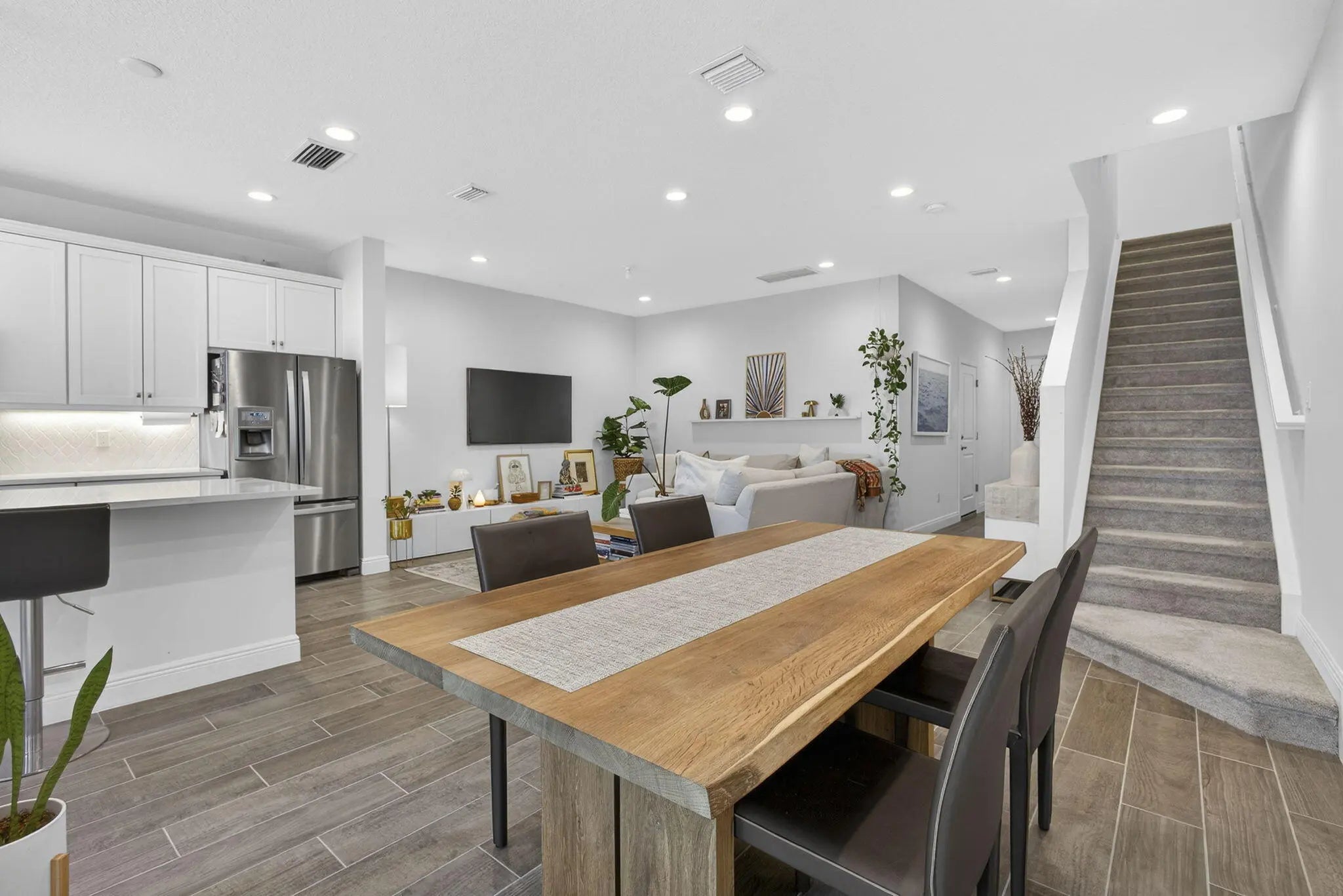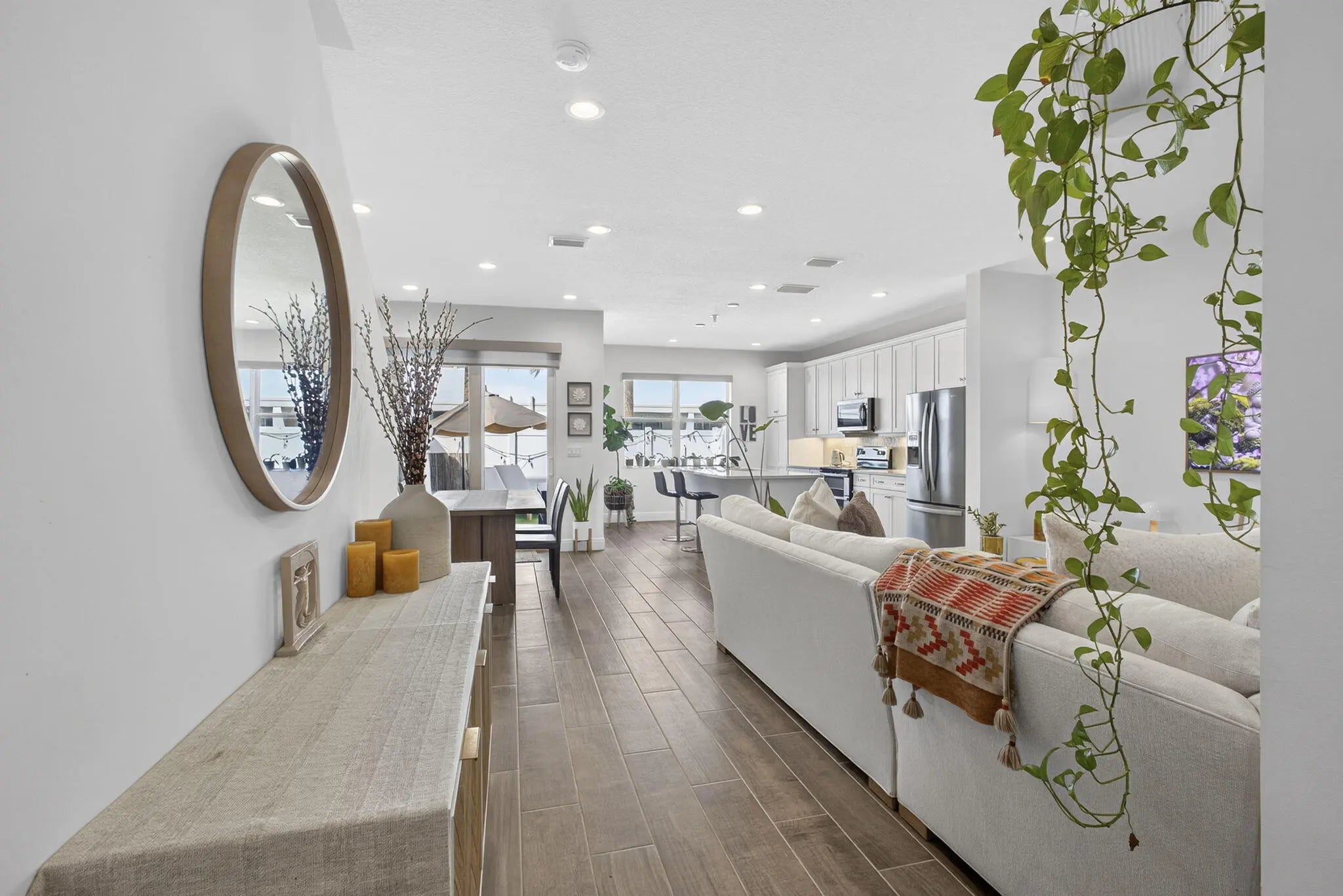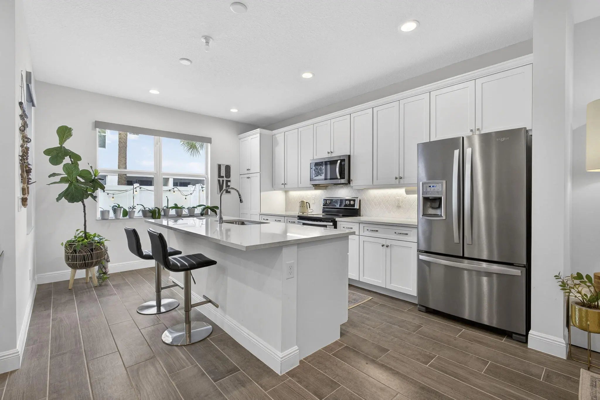 Step into a home defined by refined craftsmanship, impact windows, and attention to detail in this beautifully appointed 3-bedroom, 2.5-bath townhome located within the gated community of Sandpiper Pointe in Deerfield Beach, Florida. Built by Toll Brothers and thoughtfully designed for modern living, this residence blends quality construction with stylish, low-maintenance comfort. The bright, open-concept main level is ideal for both entertaining and everyday living, featuring a chef-inspired kitchen with Whirlpool stainless steel appliances, water filtration system, quartz countertops, abundant cabinetry, and seamless flow into the expansive great room. Wood-look tile flooring adds warmth and durability throughout the main living areas.