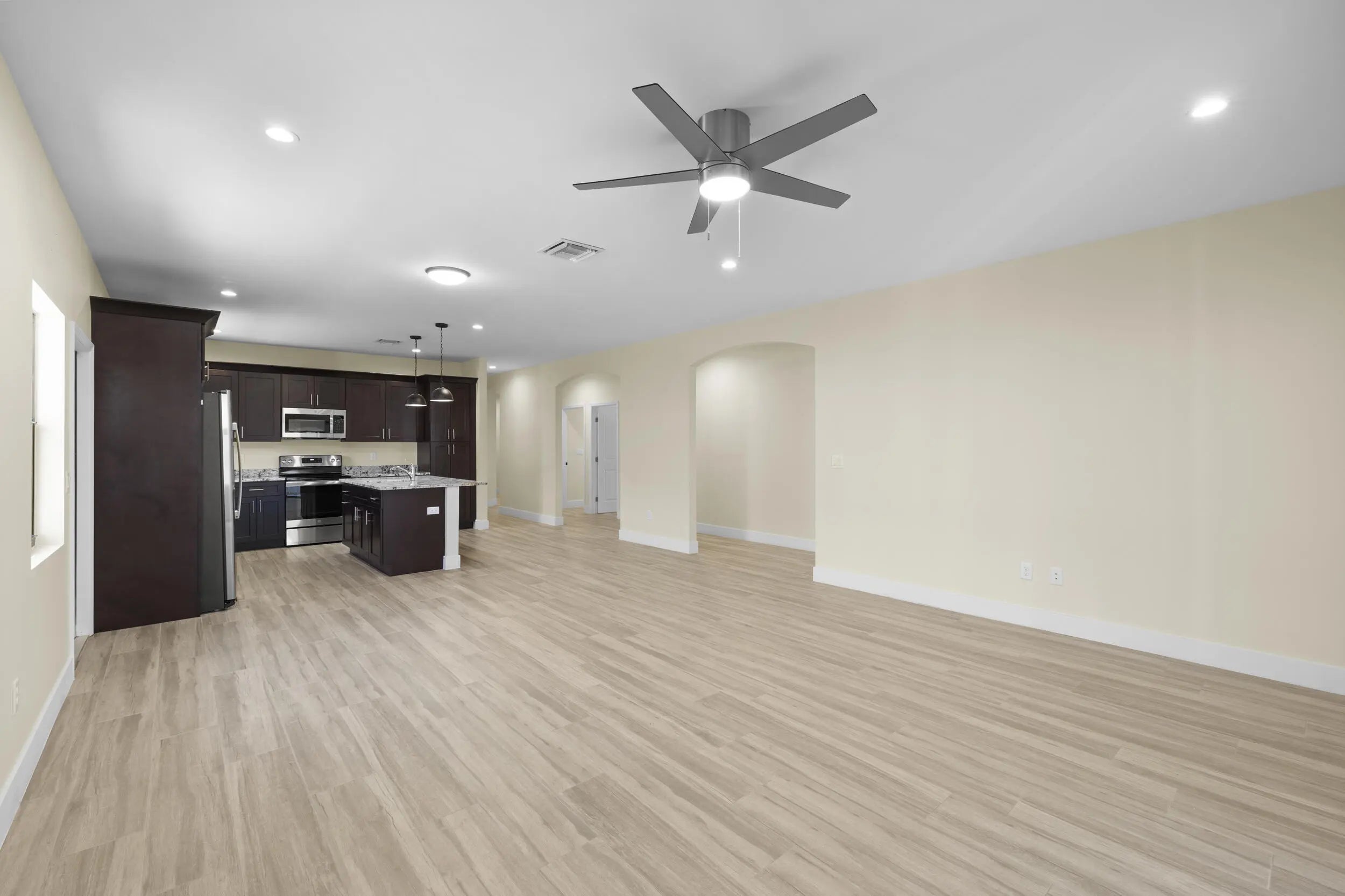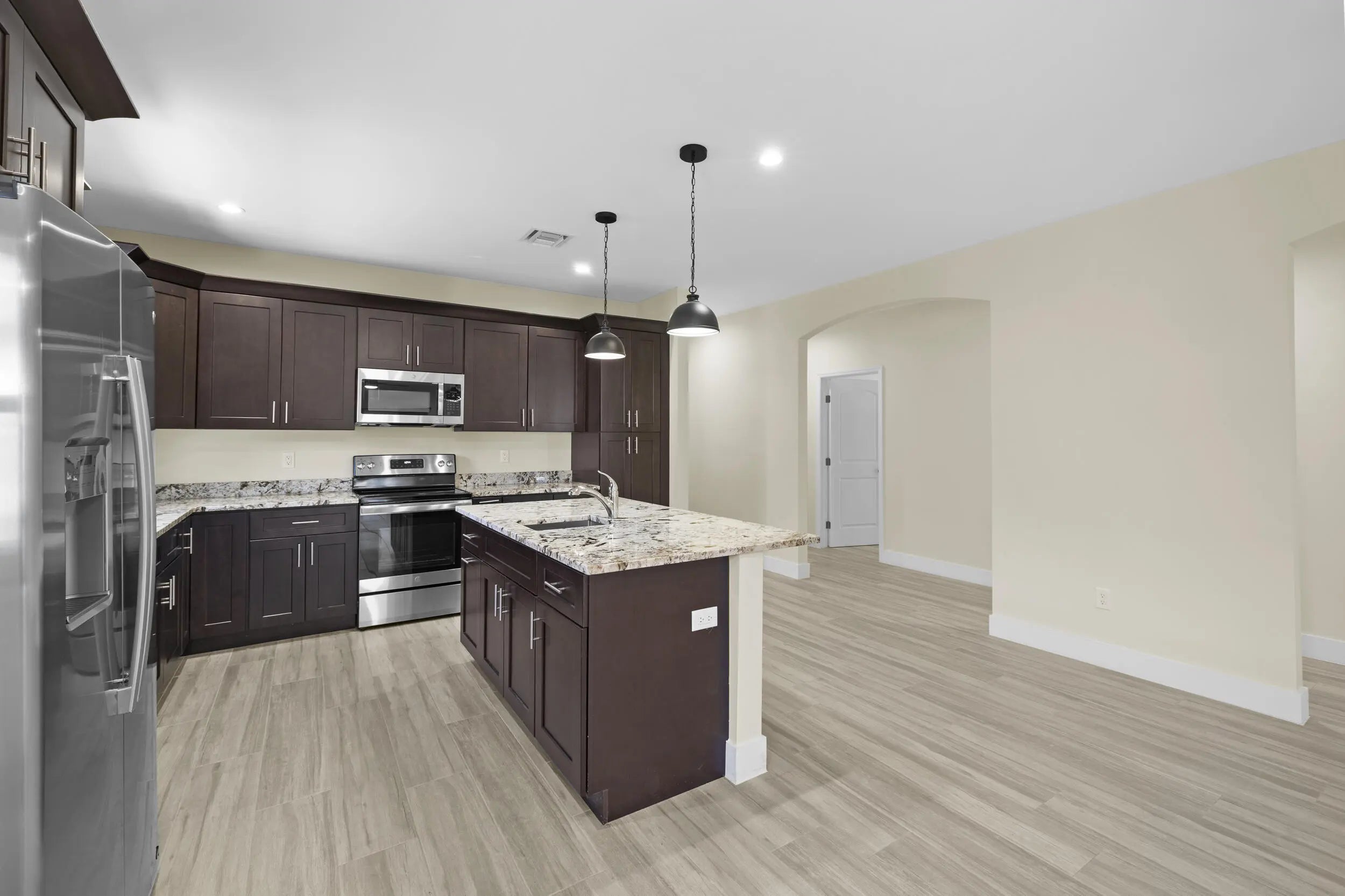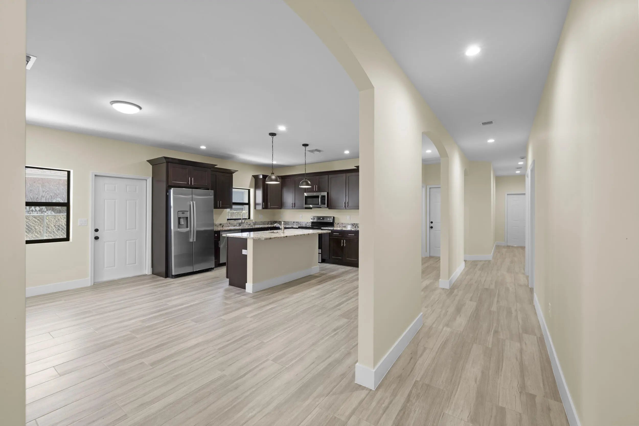 Brand-new 2024 construction in sought-after East Delray Beach. Thoughtfully designed 3BR/2.5BA residence on a quiet street, just minutes from Linton Blvd, downtown Delray, and the beach, with restaurants and shopping within walking distance. Soaring ceilings, elegant archways, and a bright open-concept layout create seamless flow from the designer kitchen to the dining and living areas. Features include modern cabinetry, granite countertops, stainless steel appliances, sleek tile flooring, and a durable metal roof. The spacious primary suite offers walk-in closets and a spa-inspired bath with soaking tub and separate shower. Full laundry room with sink and new washer/dryer, two-car garage, lush landscaping, NO HOA, plus a convenient cabana-style half bath ideal for guests. Come tour today!