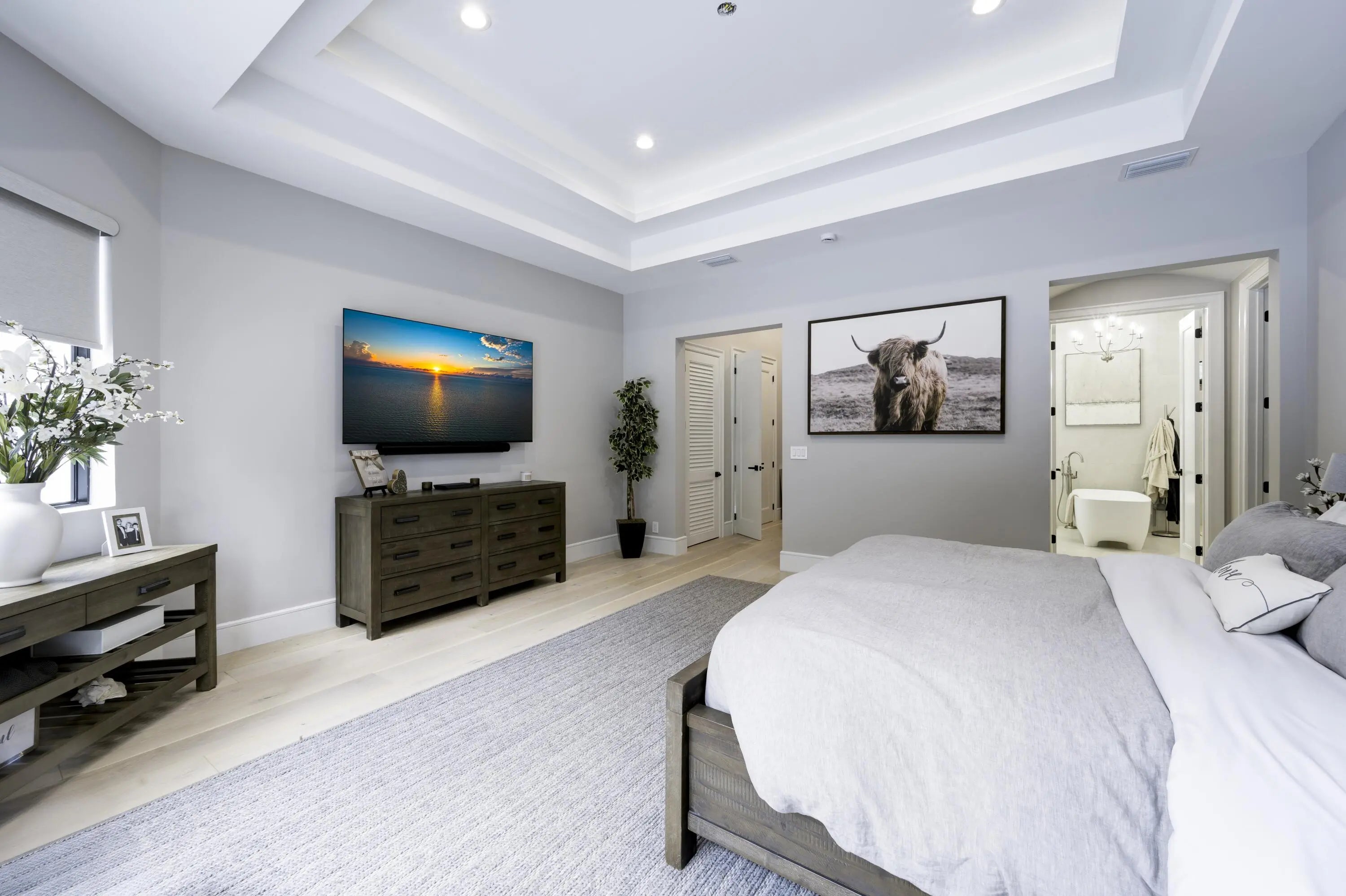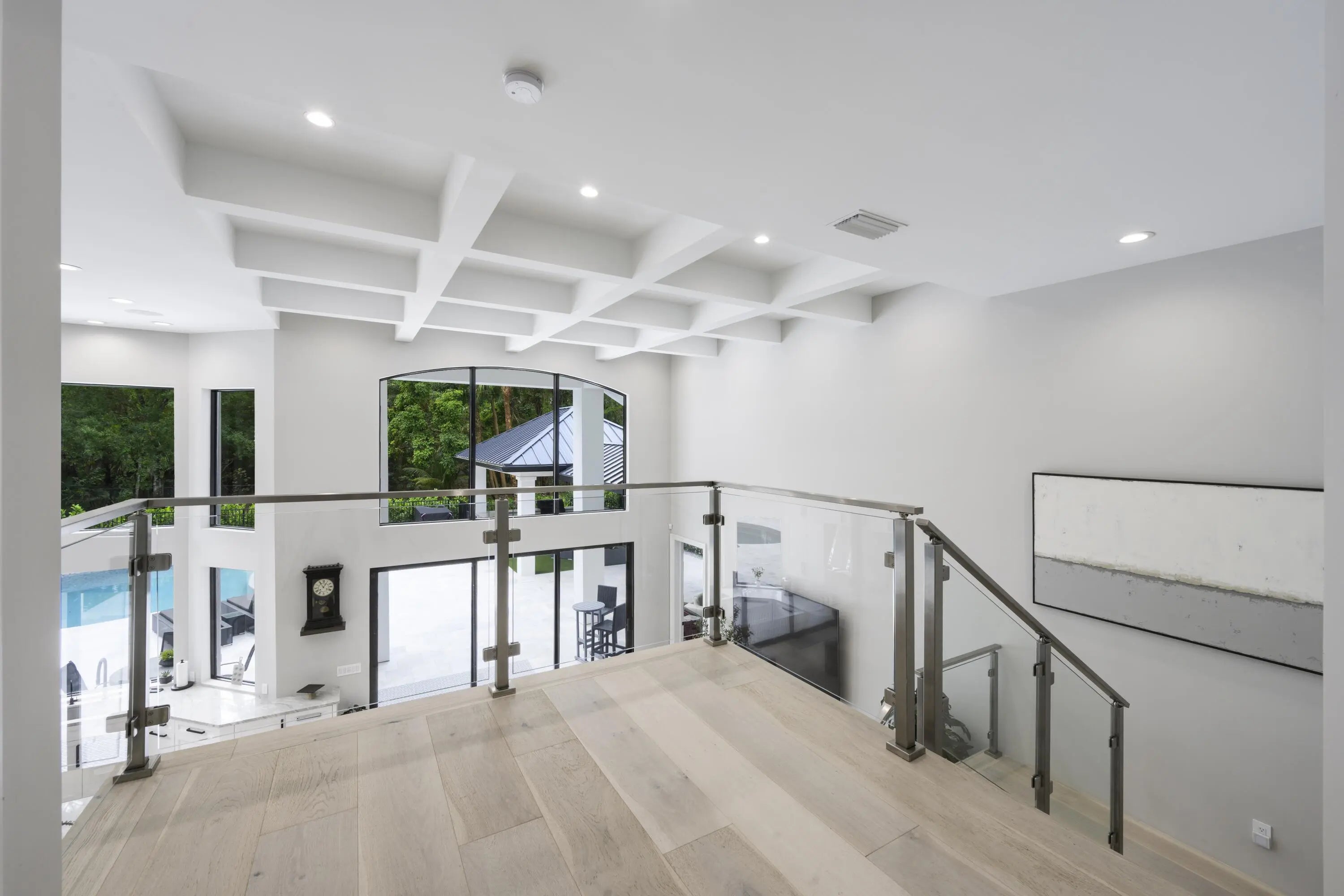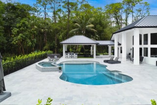 Set on 5 private acres in the heart of Loxahatchee, this stunning estate underwent a complete, top to bottom renovation completed in 2026 and shows like new construction throughout. With over 8,305 square feet of total living space, the property includes a 6 bedroom, 7 bathroom main residence with a 5 car garage, two home offices, plus a fully detached 2,116 square foot guest house, making it one of the most versatile and well appointed properties in the area. From the moment you arrive, the tone is set by a WiFi and Bluetooth equipped gate entry system framed by brand new professional landscaping that winds through a sweeping driveway leading to both the main home and the guest house beyond. Inside, soaring ceilings carry throughout every room.
